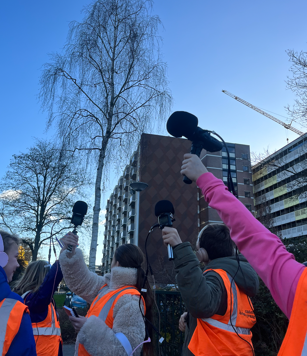 Als echte wijkreporters trekken ze met microfoon en nieuwsgierigheid de buurt in om verhalen te verzamelen: van grappige nieuwtjes tot bijzondere ontmoetingen met bewoners.